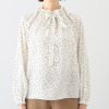 リサリサ ソフトデシン ランダムドットプリント ボウタイブラウス