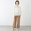 立体感のあるボウタイが、お顔周りをドラマティックに演出。適度にボリュームを持たせた袖口にはタックを入れ、さらにゴムギャザーを寄せることでクラス感をアップ。着丈に前後差をつけ、両サイドにはスリットを配すことで着心地の良いフォルムに仕上げました。被りタイプですが、ボウタイを緩めることで着脱しやすくなります。