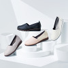 広めのワイズ幅なのにすっきりと見える、当ブランドオリジナルのこだわりの木型を採用。内側にゴムを配しており、やさしくフィットし、足入れがスムーズに行えます。履き口は起毛の人工皮革を用いて、中底全面には約5mmの高反発素材、かかと部分には約4mmの低反発素材“マザータッチ”をダブルで重ね合わせることで、優れたクッション性と衝撃吸収性を実現(当メーカー基準)。さらに、制菌性があり繊維上の細菌の増殖を抑制する“バイオライナー(R)”を甲裏部分、抗菌防臭・消臭機能付きのインソールをプラス。かかとに芯を入れていない、足当たりが柔らかなはき心地です。