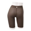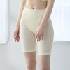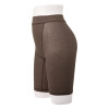 すっぽりとヒップを包み込む深めの履き込み丈で、ウエストはゴム不使用のワサ仕様。お腹部分は二重仕立てで、ふわっとやさしいフィット感です。使いやすさを追求し、余分な装飾をほどこさないシンプルなデザインに仕上げました。長めの三分丈なので、重ね履きボトムとしても活躍。