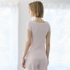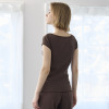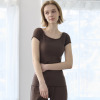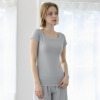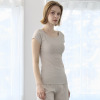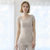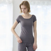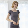 デコルテを美しく見せるボートネックデザインは、アウターから見えづらい絶妙な開き加減に設計。見えてもおしゃれな仕上がりになっており、通年で活躍します。肩部分はやさしく覆うフレンチスリーブ仕様。脇下部分までしっかりカバーするデザインで、汗をかいても安心感があります。