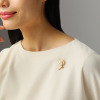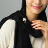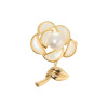 マザーオブパールのしっとりとした輝きに、ゴールドカラーのあたたかみのある高級感が加わり、胸元に清楚で上品な印象を演出します。程良いサイズ感でマフラーやショール留めとしてはもちろん、布製の帽子などに着けてもお楽しみいただけます。