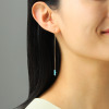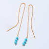 かわいらしい小粒のターコイズをあしらった、アメリカンタイプのピアスです。繊細なチェーンをピアスホールに通して使うデザインで、スタイリッシュな印象を演出します。耳元で可憐に揺れ、さりげない女性らしさをプラス。