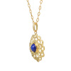 透かし文様が生み出す繊細な光と影の調べ。ゴールドカラーとラピスラズリが調和して胸元を美しく彩ります。