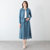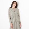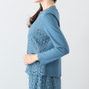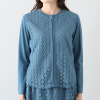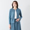 前身頃に用いた、上品さの中にクールでモダンな印象を与える、幾何学的なサークル柄のレースが存在感を放ちます。レース部分には裏地を重ねて、肌当たりを考慮。後ろ身頃と袖は通気性の良い、さらっとしたストレッチ性のある綿混素材を用いて、動きやすくて着心地の良い、春から秋までロングシーズン活躍できる仕様に。