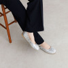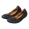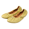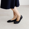 上質なラムレザーを贅沢に使用したフラットパンプスです。アッパーだけでなく、足が直接触れるライニングや中敷きにもラムレザーを採用し、ふわっと柔らかな足当たりと足なじみを実現。履き口のギャザーデザインが足をやさしく包み込み、吸い付くようなフィット感が得られます。ブランドロゴを刻印したメタルモティーフが洗練された印象。