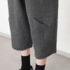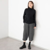 体形を選ばないシルエットは絶妙なバランスで、やや丸みを帯びたやさしい印象でありながら、裾の切り替えで脚さばきの良さも確保。ウエスト前部分は切り替えを配してすっきりとした見た目に、両脇から後部にかけてをゴム仕様にして、窮屈に感じにくいように仕上げました。前タックの上部のみステッチで押さえてあるため、すっきりとした印象を保ちます。股ぐりもゆったりとしており、長時間の着用でもストレスを感じにくい点が魅力です。