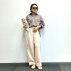 贅沢にほどこされたフロントのタックが、洗練されたボリューム感を生み出し、大人のカジュアルスタイルを格上げ。内側に向かって畳まれたインタック仕様により、お腹周りをすっきりと見せながら、エレガントでクラシカルな印象をプラスしています。腰周りはスマートなシルエットでありながら、ウエスト両脇から後部にかけてゴム仕様にすることで、美脚効果とリラックスしたはき心地を両立させました。