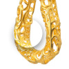 一体成型で全面にデザインをほどこしており、純金のラインが凝縮したような立体感を持たせつつ、軽やかな着け心地を実現。チェーンを本体に直接通すつくりで、美しいU字型が胸元に凛と映えます。