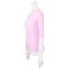 襟は、首元にしっかり沿って程良く隠してくれるボトルネック。五分袖が気になる二の腕をカバーしつつ、手首を見せることで腕をほっそりと見せてくれそう。かがんだ際にも背中が見えにくい、長めの着丈に設定しました。