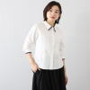さらりとしたコットン生地をメインに用いた、通気性が良く軽やかな着心地。襟や前立て、袖口には別布の配色を効かせ、デザインの立体感をアップ。ボトムスにインでもアウトでも、バランス良く着用できる丈感に設定しました。