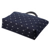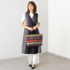 久留米かすりの柄を生かした、デイリーに活躍するデザイン。開口部には両開きファスナーを採用し、握りやすい取っ手で使いやすさを考慮。内部にはオープンポケットやファスナーポケットを備え、取り外し可能な底板付きで機能性も充実しています。