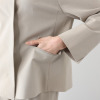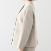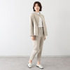 細番手の合繊素材を使用した、一見梳毛のような微光沢感と上品な落ち感が魅力の一着。フランス、イタリアのデザインチームが企画した、“デレガント社(DELEGANT)”によるトップ染めの綾織素材です(生産は中国)。ウォッシャブル、ストレッチ、シワになりにくい特性を兼ね備えた素材で、日々のお手入れが簡単。