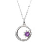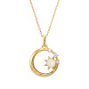 サージカルステンレスを使用し、天然石をあしらったペンダントです。夜空に瞬く星々が願いを届けてくれるというコンセプトのもと、月と星のモティーフをシンプルにまとめることで、神秘的でエレガントな表情に仕立てました。天然石の美しさを際立たせるため、小ぶりなCZを添えています。