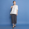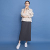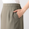 身体のラインが響きにくい、トレンドのIラインシルエットに設定。後ろ身頃にタックを配すことで、歩きやすさにもこだわりました。ポケットは斜めに切り替えたスラッシュ仕様で、手の入れやすさに配慮しつつ腰を視覚的に細く見せる効果を狙いました。