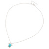無色透明剤の含侵処理のみをほどこしたアリゾナ産ターコイズを使用した、カメモティーフのペンダントです。ゆったりと歩むカメは、着実に前へ進む姿の象徴といわれます。努力を重ねる人や人生の節目を迎える方への励ましの意味も込められています。また、ターコイズは古来より“幸運”や“友情”の象徴とされ、持つ人に勇気と希望を与えるといわれています↑長寿や健康の象徴とされ、古くから親しまれているカメモティーフを、末永い幸せや安らぎを願うお守りのように身に着けていただけます。丸みを帯びた甲羅のフォルムが、胸元にやさしい印象をプラス。シンプルながらも存在感があり、日常使いにも特別なシーンにも映えますチェーンはピンスルータイプで、自由に長さ調整が可能。トップを取り外して、お手持ちのレザーコードに付け替えても素敵です。