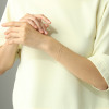 ペタルチェーンとボックスチェーンの流れるような光の輝きをお手元に添えて。幅広く活躍するアイテム。