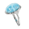 ドミニカ産ラリマールの美しいブルーと独特の模様を、シルバーの艶めきが上品に引き立てて魅せる逸品。