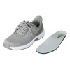 ヒールパッドを含む三層構造のインソールとクッション性のあるアウトソールが、着地衝撃を吸収し軽減。アウトソールにラバーを用いた、グリップ力のある防滑仕様(すべての路面に対して滑りにくいわけではありません)。