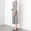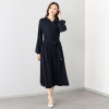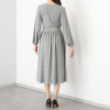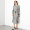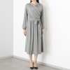 巻かずにそのまま着用できるカシュクール風デザインを採用。下着を気にせず着用できる絶妙な深さのVネックは、美しいドレープにより、胸元を美しく演出します。ウエスト切り替え部分にゴムを使用しているため、締め付けにくく快適に過ごせそう。また、ブラウジング効果でお腹周りをさりげなくカバーしてくれる点も魅力的です。付属の共布ベルトを用いれば、凛とした印象に。生地を贅沢に使用したフレアーシルエットは、歩く姿を優雅に見せてくれます。