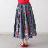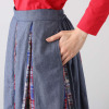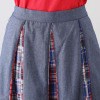 シャンブレー生地とパッチワーク生地を絶妙に組み合わせたプリーツスカートです。落ち着いた表情のシャンブレー生地をベースに、切り替え部分には大きめのプリーツをほどこしました。この異素材の組み合わせが、カジュアルながらも洗練された印象を生み出しています。動くたびに美しく揺れるプリーツが、パッチワーク生地のデザインを引き立て、立体感と奥行きのある表情を演出。