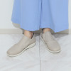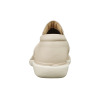 フロントの自然なシワ感が、牛革らしい温かみと高級感を演出。両サイドのゴムがしっかり伸びるため、着脱がスムーズかつ歩行時も足の動きに合わせてフィットします。単純な幅広ではなく、親指の付け根に高さを持たせ、立体的でゆとりのある4Eながら、すっきりスマートに見える当ブランド独自の木型を使用。