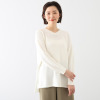 国内ニット工場で丁寧に作られた、裁断も縫い合わせもしない一着まるごと編み上げるホールガーメント製法の一枚。縫い目がないためゴアつきを感じにくく、快適な着心地です。ゆったりとしたシルエットは腰周りをカバーし、体型を気にせずリラックスして着用いただけます。