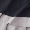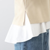 前身頃はさまざまなボトムスと合わせやすい丈感、後ろ身頃はヒップラインをカバーする長めの着丈に設定。ニット部分の両サイドに切れ込みを深めに入れることで脚長効果を狙いました。
