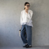 袖は立体感のあるパターンでモード感をプラス。身幅はゆったりとしながらも、全体的にコンパクト設計でスタイルアップ見えを叶えます。ドッキングした裾部分のシャツ生地には折りたたんだタックをほどこし、分量感がありながらも膨らみすぎない、すっきりとした見た目に。