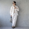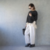 軽やかで着心地の良い薄手のダンボールニットをメインに使用。程良いハリ感があり着心地が良く、美しいシルエットを表現できる素材感です。