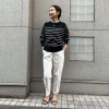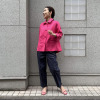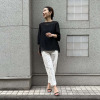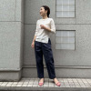 腰周りや太ももはゆったりとしながらも、膝から下に向かって細くなるテーパードシルエットは、脚全体をすっきりと見せてくれ、スタイルアップ効果抜群。センターに入ったステッチが縦のラインを強調し、より引き締まった印象を与えてくれます。