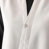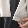 透けにくくシワになりにくい、ジョーゼットのような肌触りのジャージー素材を使用。しなやかなドレープがあるので、美しいシルエットを描きます。前立てを開けたり閉めたりするシンプルな着こなしはもちろん、カシュクール風の着こなしなど、ボタンを留めることでシルエットに変化を楽しめるのが最大のポイント。ドレスの上に羽織ってラグジュアリーに、Tシャツの上に羽織ってカジュアルにと、お手持ちのアイテムに合わせるだけで、普段の装いをクラスアップしてくれます。