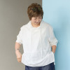 綿100%の天然素材を使用。奥行きのあるポコポコとした織り柄がかわいらしい雰囲気を演出しつつ、カジュアルになりすぎない上品な立体感を生み出しています。天然素材ならではのやさしい肌触りと通気性の良さも特徴で、年中着たくなる風合いです。