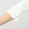 ボートネック寄りの襟元がネックラインを女性らしく見せつつ、七分袖が気になる二の腕をきれいにカバー。裾のスリットが、着こなしに表情をプラスします。