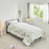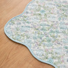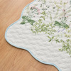 1枚プラスするだけで、お部屋を素敵な雰囲気に模様替えしてくれる、軽量・コンパクトなマルチカバーです。お肌に触れる生地にサラッと柔らかな綿混のリップル生地を使用し、生地表面の凹凸感で、肌と生地が密着しすぎず、爽やかにお使いいただけます。四周はハンドメイド感のある雰囲気の波型のスカラップ縫製、リーフ調のキルトでかわいらしく仕上げました。海外スタジオによる洗練されたデザインを、日本の家屋にあった雰囲気にアレンジし、メーカーオリジナルで描き下したリバーシブル仕様。中わたにはうれしい抗菌防臭機能付き。洗濯機で丸洗い(ネット使用)できるので、お手入れ簡単で清潔に使えます。ラグとしてお使いいただく際の目安サイズは江戸間換算で約3畳。季節の模様替えにぴったりの一品をぜひお試しください!