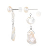 淡水パールをあしらった2ウェイピアスです。淡水ボタンパールのみでシンプルに、淡水バロックパールのチャームを付けて華やかに装うこともできます。形の異なるパールを組み合わせることで生まれる、唯一無二の表情が魅力。パールのテリがレフ板のように光を集め、お顔周りを明るく見せてくれます。