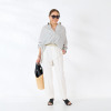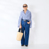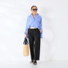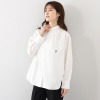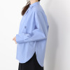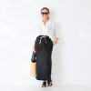 裾はラウンドで少し前後差があり、前をインしたりふわっとオーバーでも決まりやすく幅広いボトムとコーディネイトいただけます。後ろヨーク中心にはタックを入れ、ヒップが隠れる着丈に設定。デザイン、素材、カラー、すべて当ブランドのオリジナルです。