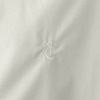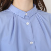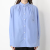 清涼感のある素材を使用。程良い身幅できちんと感があり、小さめの襟元にタックを入れた当ブランドの人気のディテールを採用。袖カフスと剣ボロ部分の開きをフロントに配置し、ボタンを外すと腕が出るような仕様にしました。また、左身頃の中心に入れたロゴ刺しゅうがアクセント。