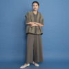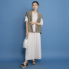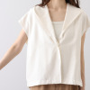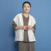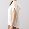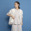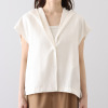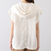 肩先までカバーするフレンチスリーブと、腰回りをすっきり見せる絶妙な着丈で、スカートやパンツ、ワンピースなどさまざまなボトムスと相性抜群です。前身頃から袖ぐり、後ろ襟ぐりまでの広めの見返し仕立てにより、表面のステッチを最小限に抑え洗練された印象に。ベースカラーと同系色でさりげなく包んだスナップボタンが品格を高めます。Vネックからドレープを描くようにつながるフードデザインは、首元から背中のラインを自然にカバーしつつ、ちょっとした日差しや風から髪やお顔をカバーする実用性も。