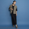 斜めの織り目が美しいツイル素材を採用。レーヨンのしなやかさとナイロンの適度なハリ・コシが心地良く、リネンが加わることで上質な風合いと高級感を醸し出しています。