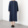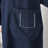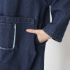 ウォッシュ加工をほどこした、柔らかさとしなやかさのあるデニム素材を使用しました。着用と洗濯を重ねるごとに味わいが増していきます。ゆったりとしたAラインシルエットで快適な着心地。衿ぐりはやや広めに設計し、袖はラグランスリーブでアームホールにもゆとりを持たせました。