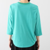 ポリエステルとコットンをバランス良く組み合わせた天竺素材を使用。程良い厚みがあり、身体のラインを拾いにくく、透けも気になりにくいのがうれしい。柔らかさの中にハリがあり、フラットな表面感で、カジュアルすぎずきれいめな印象。型崩れしにくく、シワになりにくいのも特徴です。