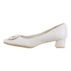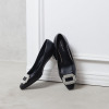 アッパーに、はっ水加工をほどこしたレザーを使用。パールビジュウが煌めくバックルをあしらった上品なデザインです。光を受けて美しく輝き、足元から優雅な印象を演出します。安定感のある4cmのヒールは、普段ヒールに慣れていない方にもおすすめ。普段使いはもちろん、結婚式などのフォーマルシーンやパーティーなどのオケージョンにも。