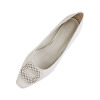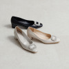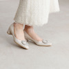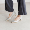 煌めくパールビジュウが主役の、女性らしい一足。安定感あるヒール高で、華やかさと履きやすさを両立。