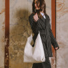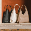 トートバッグは、厳選した高級カーフレザーを使用し、シュリンク型押しをほどこしました。キズが目立ちにくく、柔らかさと適度なハリ感のありながらも、一枚仕立てならではのしなやかさと、身体に自然に沿うくたり感が魅力です。イタリアならではの染色技術が生み出す深みのある発色が、大人の装いにラグジュアリー感を添えてくれそう。