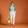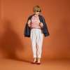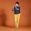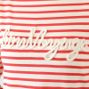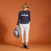 胸元の“Bon Voyage”のロゴは、爽やかなカラーの糸を用いてコード刺しゅうで表現。身体のラインをきれいに見せながら、ボディーラインを拾いにくいシルエットに仕上げました。