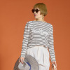 爽やかなフレンチマリンテイストのプルオーバーです。ストレッチ性があるしなやかなカットソー素材を使用。襟幅をやや広めに取ったボートネックデザインが、首元をすっきりと演出。肩線を前側に寄せることで後ろ襟ぐりをそっとカバーし、前襟ぐりは首に当たらず、すっきりとした設計に。