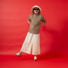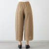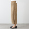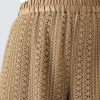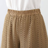 縦方向に連なるモティーフが脚のラインを美しく見せ、ゆったりとしたストレートシルエットながら、すっきりとした編地で縦のラインを強調。通気性の良い透かし編み生地で、春夏シーズンにぴったり。裏地には軽い伸縮性を持つジャージーを使用し、安心感のあるはき心地です。ウエスト部分は総ゴム仕様で着脱もスムーズ。