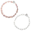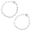大粒の淡水パールとデザインチェーンネックレスの2本セット。装いに合わせて一本でも重ね着けでも。