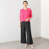 適度なシャリ感と伸縮性のある、さらりとした肌触りが心地良いカーディジャケットです。総針編みに仕立て、立体パターンを駆使することでジャケットのように美しいシルエットを実現。程良いハリと厚みがあるため身体のラインを拾いにくく、インナーに少し厚みのあるものを着用しても美しいフォルムをキープします。